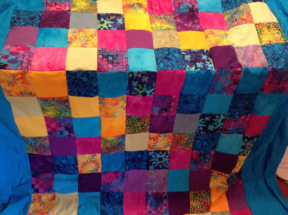 1. your choice of 5 different colours, sewn on a diagonal with solid or mottled colour border and back.